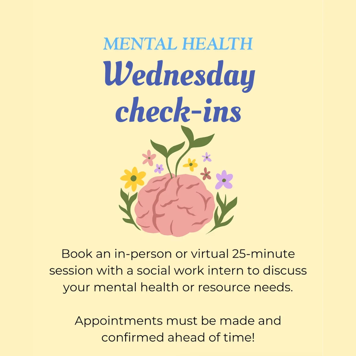 Mental Health Check-In! (in-person or virtual)