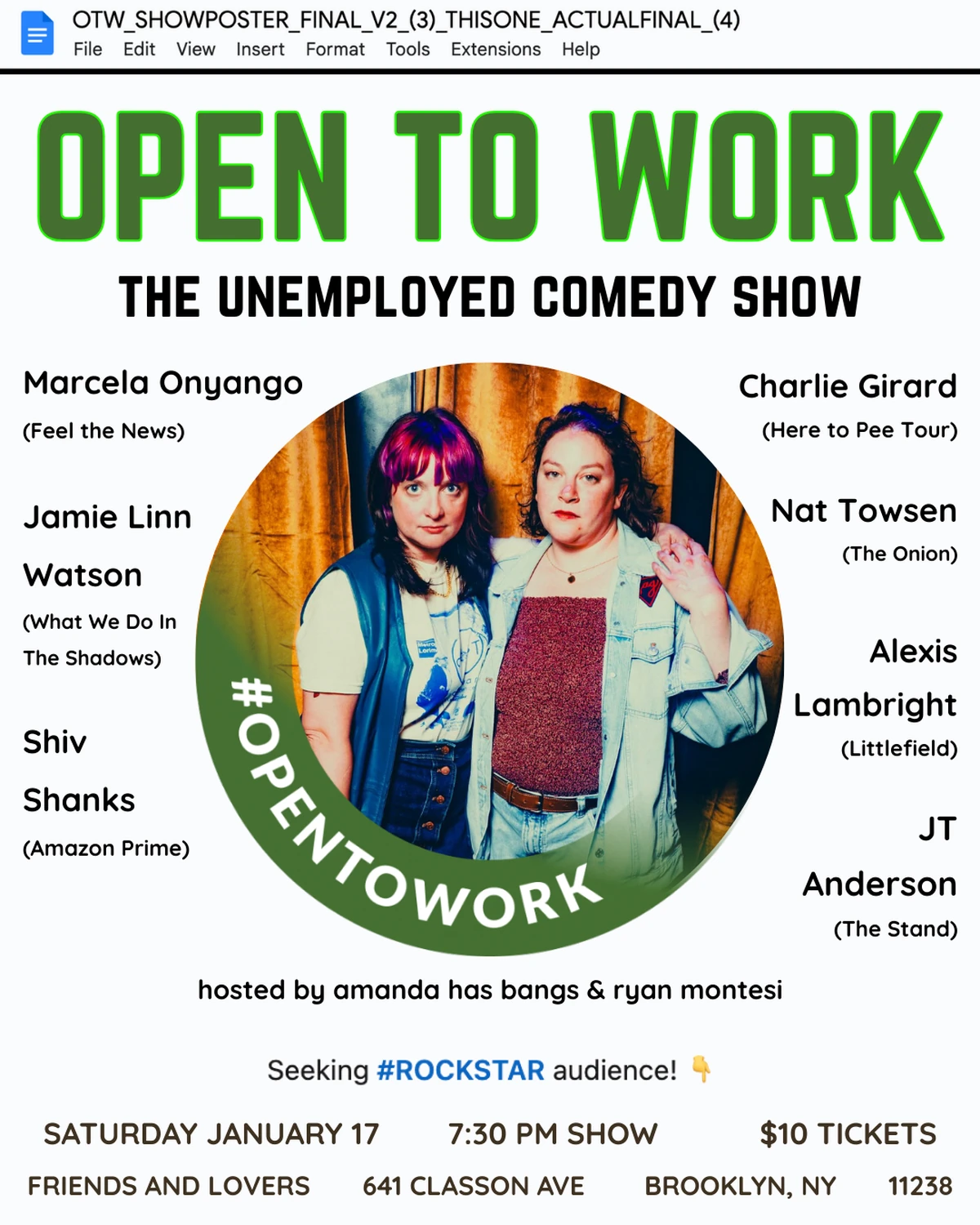 Open To Work: An Unemployed Comedy Show