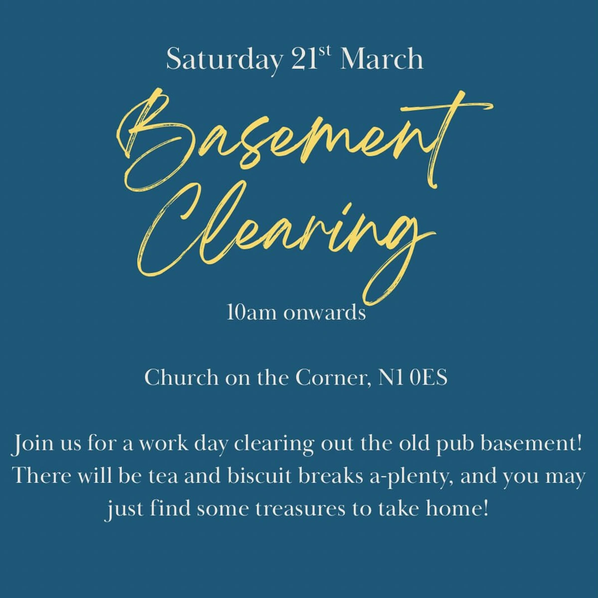 64 Barnsbury Rd, LondonEvent at Church on the Corner • On Saturday at 10 AM