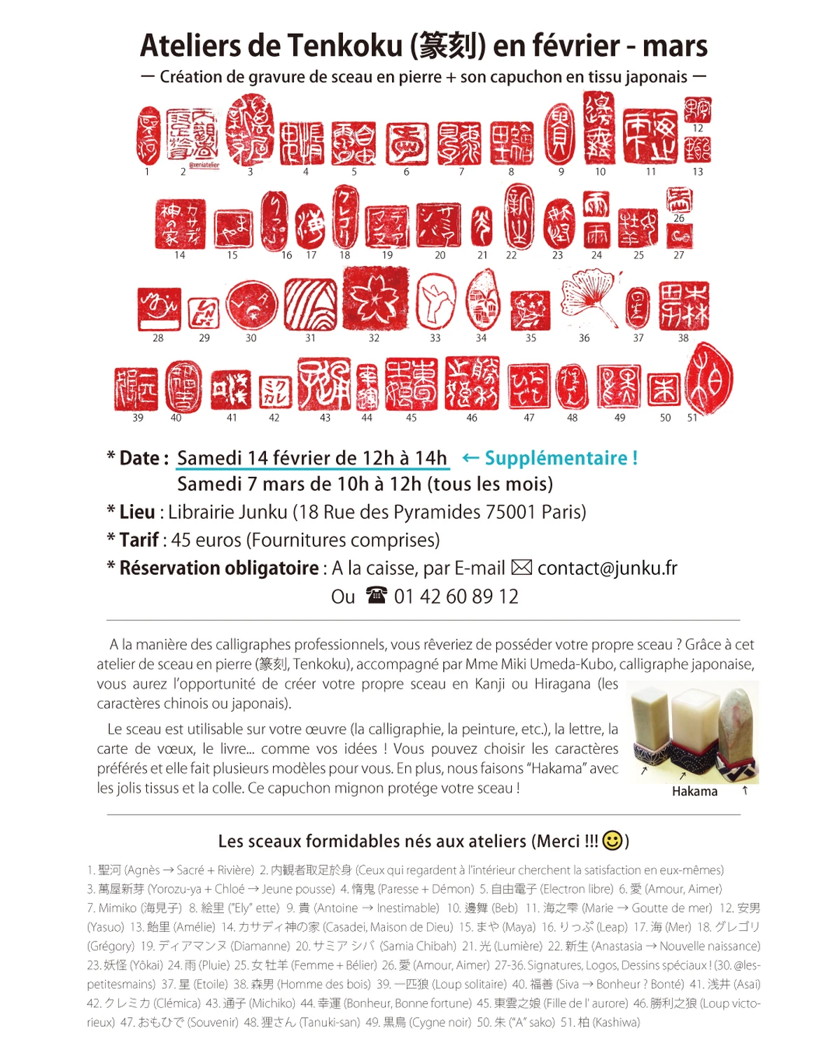 Tenkoku Workshops in February - March