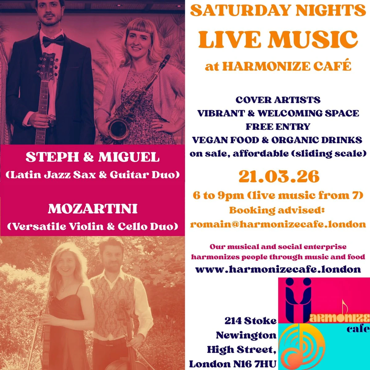 214 Stoke Newington High St, Londongig at Harmonize Cafe • Show on Saturday at 6 PM