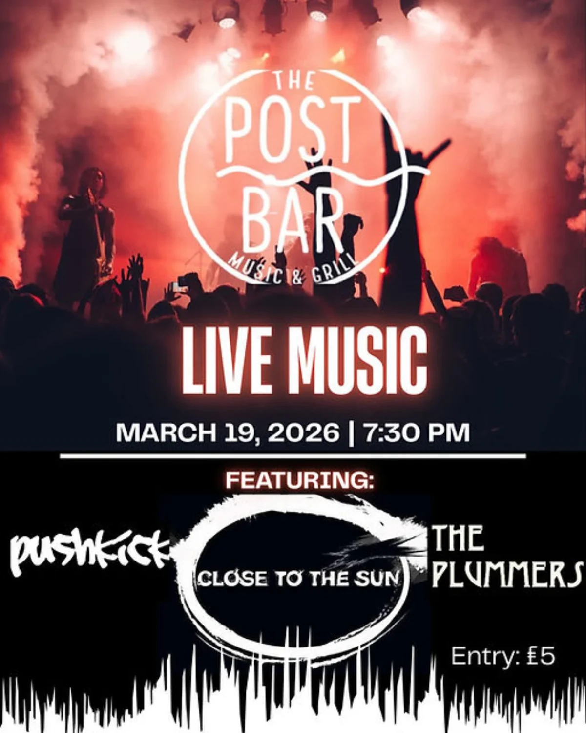 Live Music - Push Kick, Close to the Sun and The Plummers